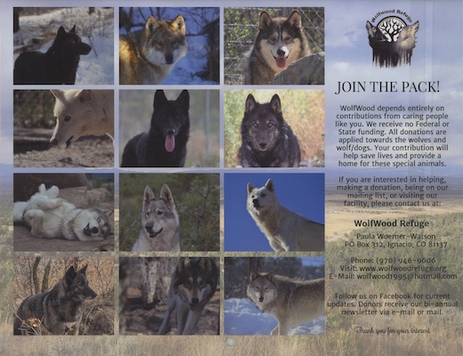 If you would like to purchase one or many please email Paula at wolfwood1995@hotmail.com with the quantity you want and your mailing address. You can either pay with a check written out to Wolfwood Refuge and mailed to: