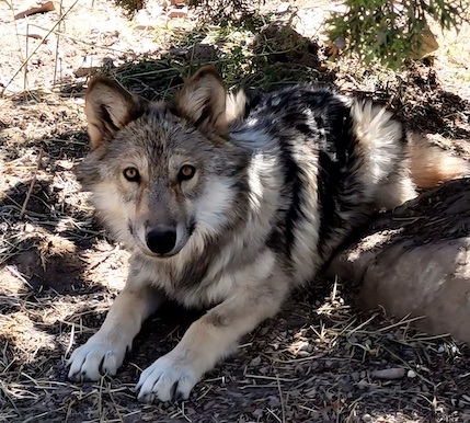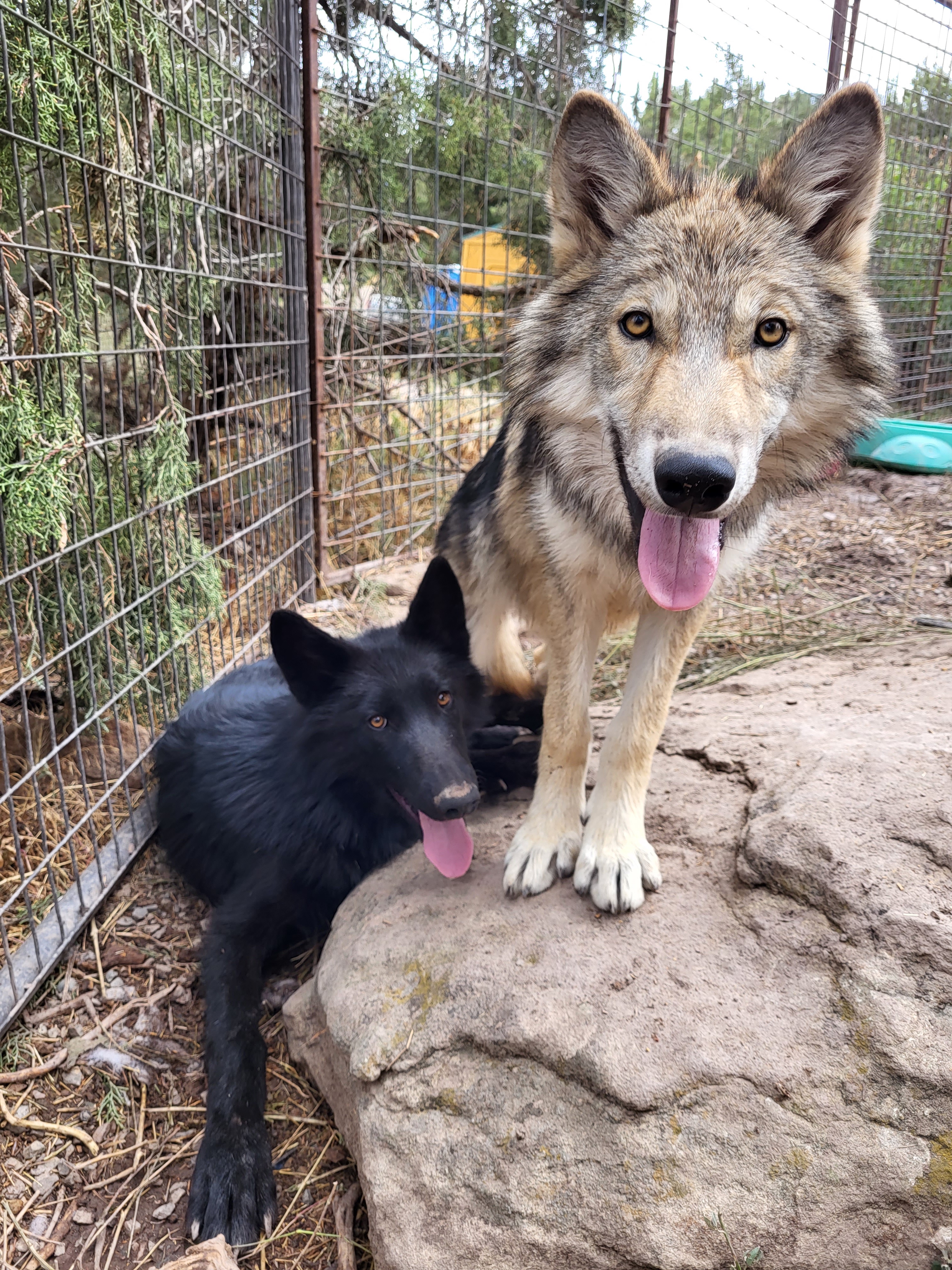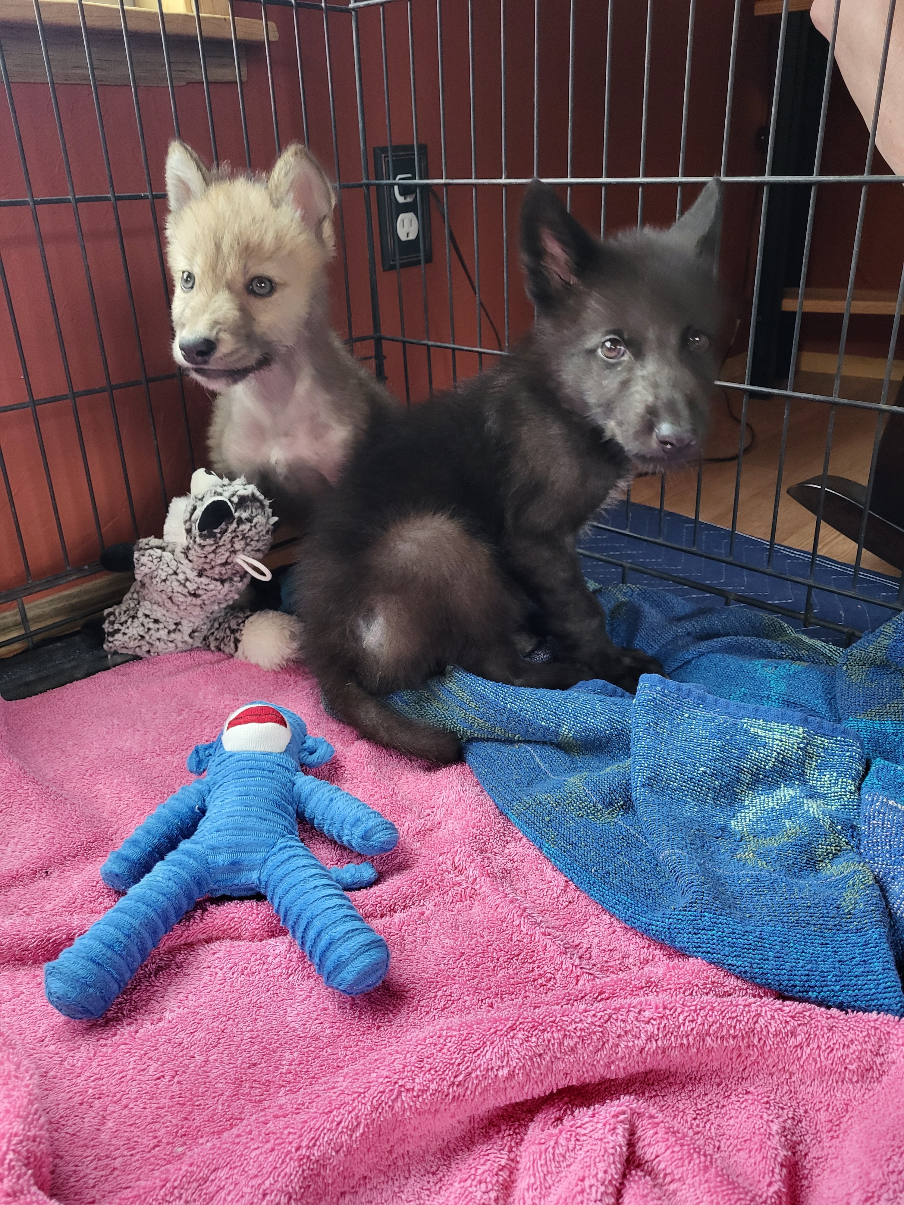 Delta is the trouble maker of the two, and perhaps too smart for her own good. She loves to try and take things she deems interesting, as most wolves do. With her human friends and caretakersshe is extremely physical. She will give wolf rubs and give big toothy open mouth kisses. She is holding onto some of her puppy behavior longer than normal because of her lack of canine parental figure. She will suckle on fingers, and nibble on chins. Her transformation has been stunning. She went from being mostly hairless with weak twisted front legs, to looking like a mini adult wolf over the course of a few months. Her colors are striking.